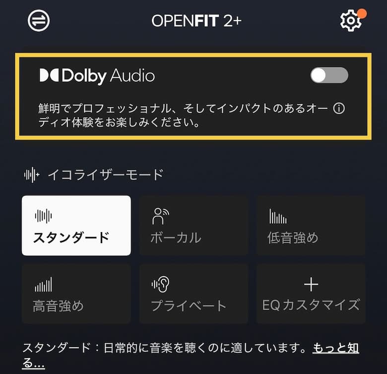 「Dolby Audio」モードが入るだけで、音の奥行き感が変わります。