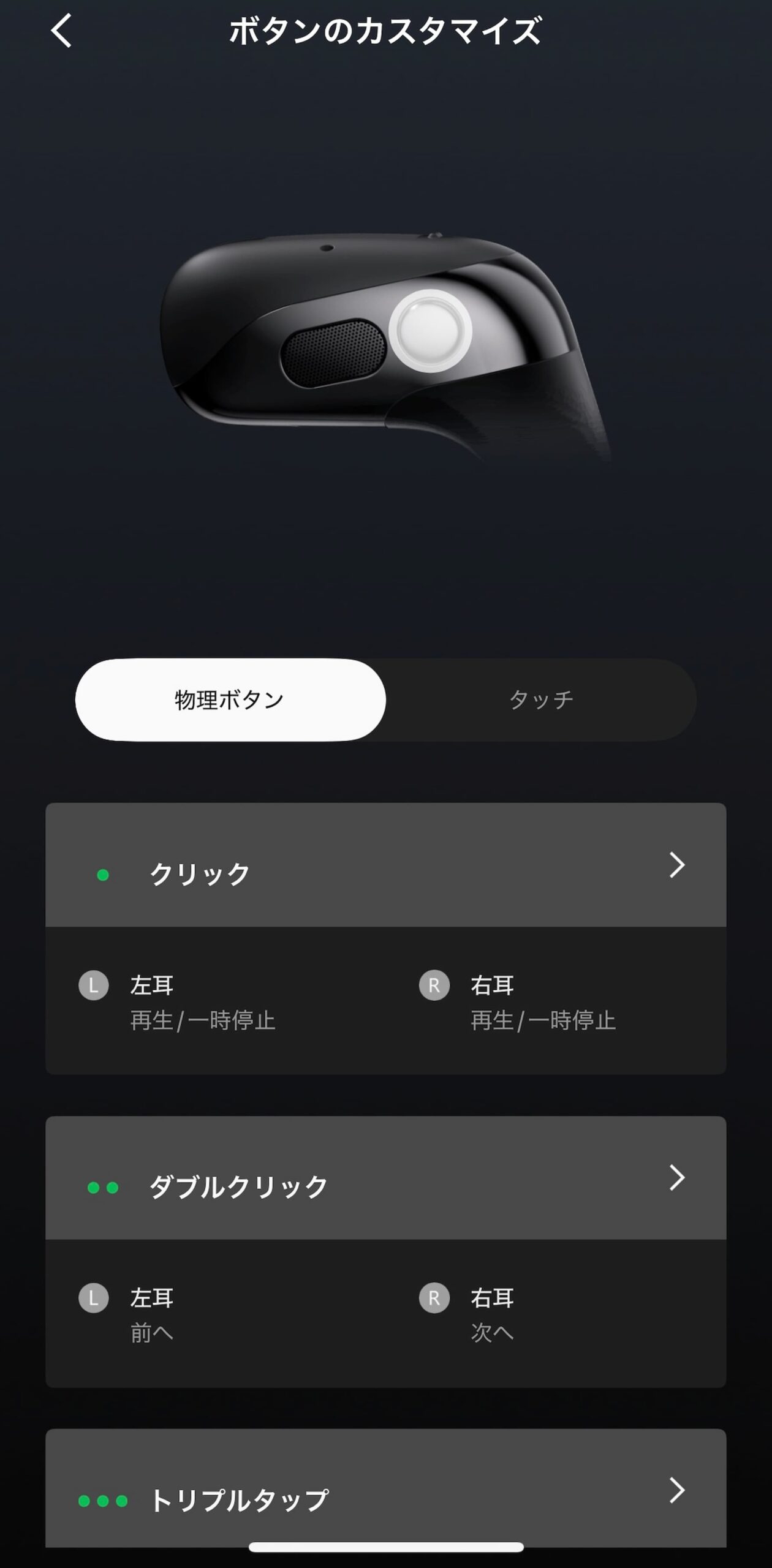 専用アプリで「左を1回押しで曲戻し、右を1回押しで曲送り」のように、自分の使い方に合わせてボタン操作を自由に変更できます。
